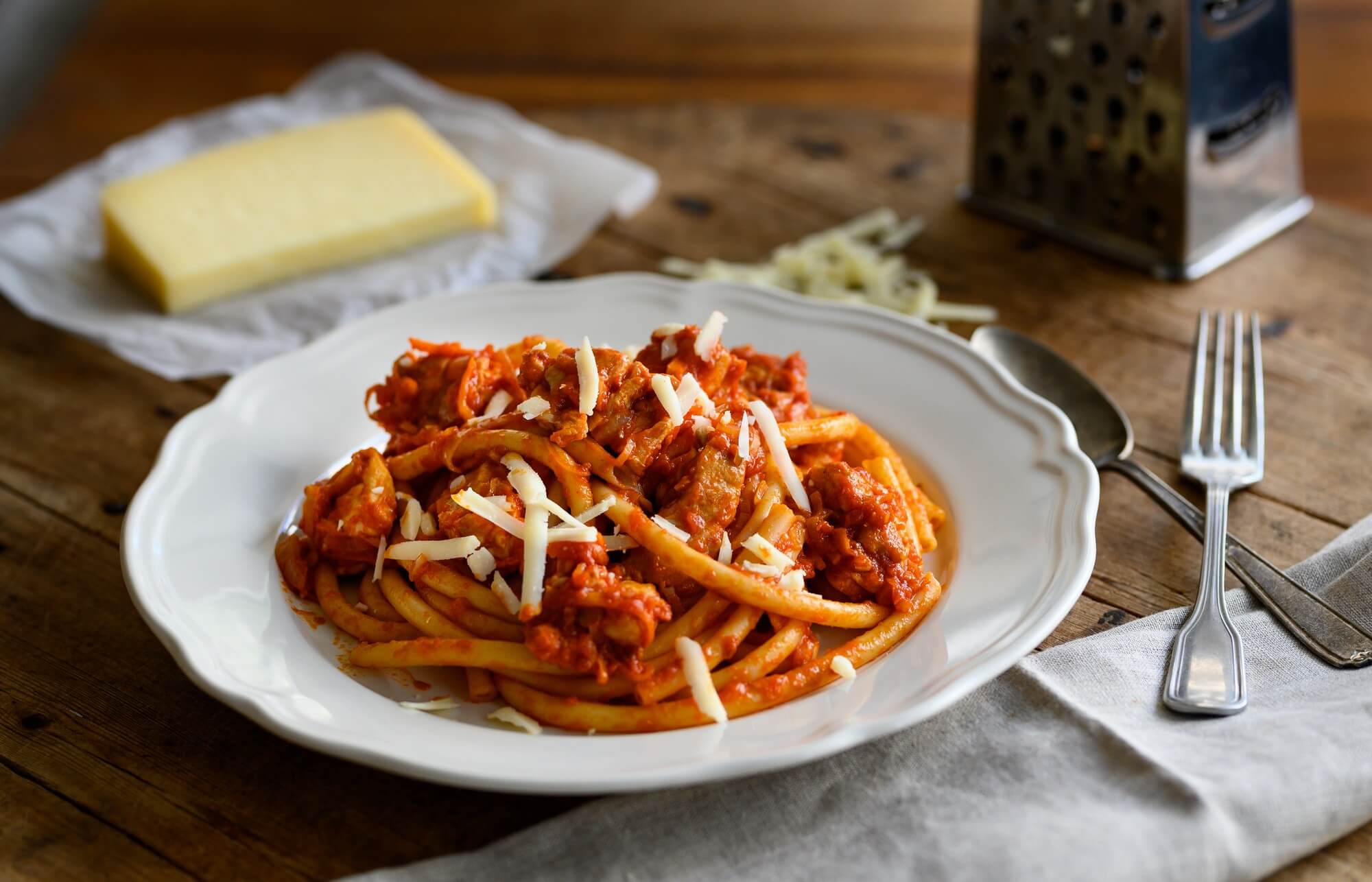 Όταν το κοτόπουλο και το χοντρό μακαρόνι είναι έτοιμο, αποσύρετε την κατσαρόλα από την φωτιά.