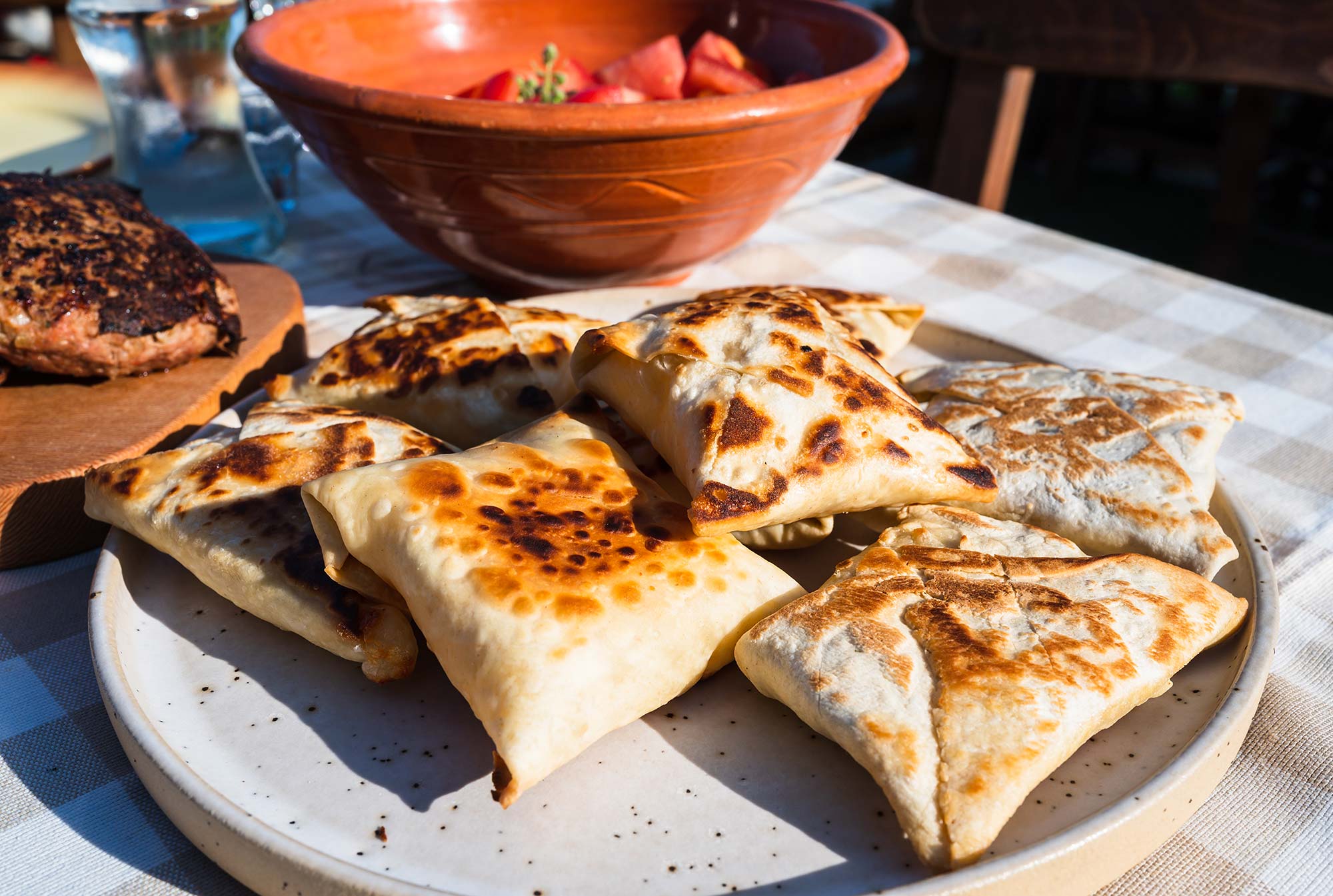 Τοποθετείτε τα καλιτσούνια στην μαντεμένια πλάκα του BBQ, πρώτα με την ένωση προς τα κάτω και ψήνετε για συνολικά 8-10 λεπτά, γυρνώντας ανά χρονικά διαστήματα.
